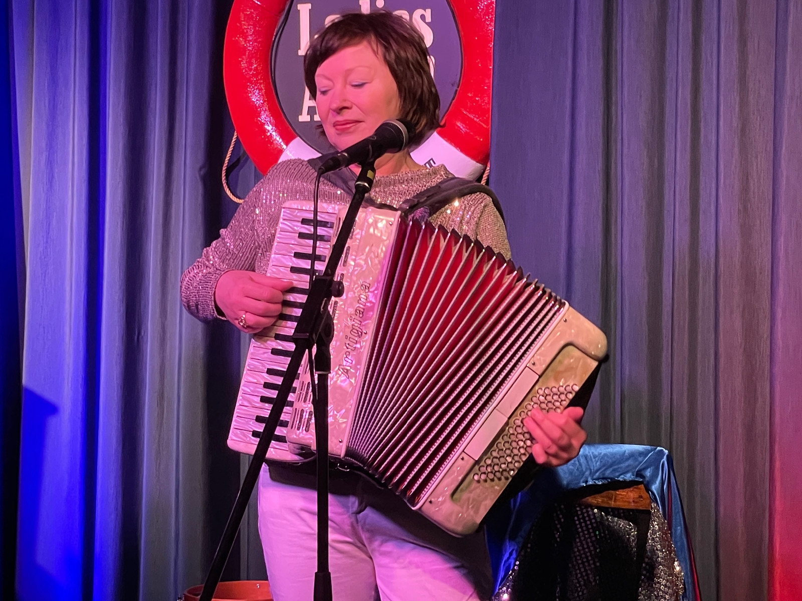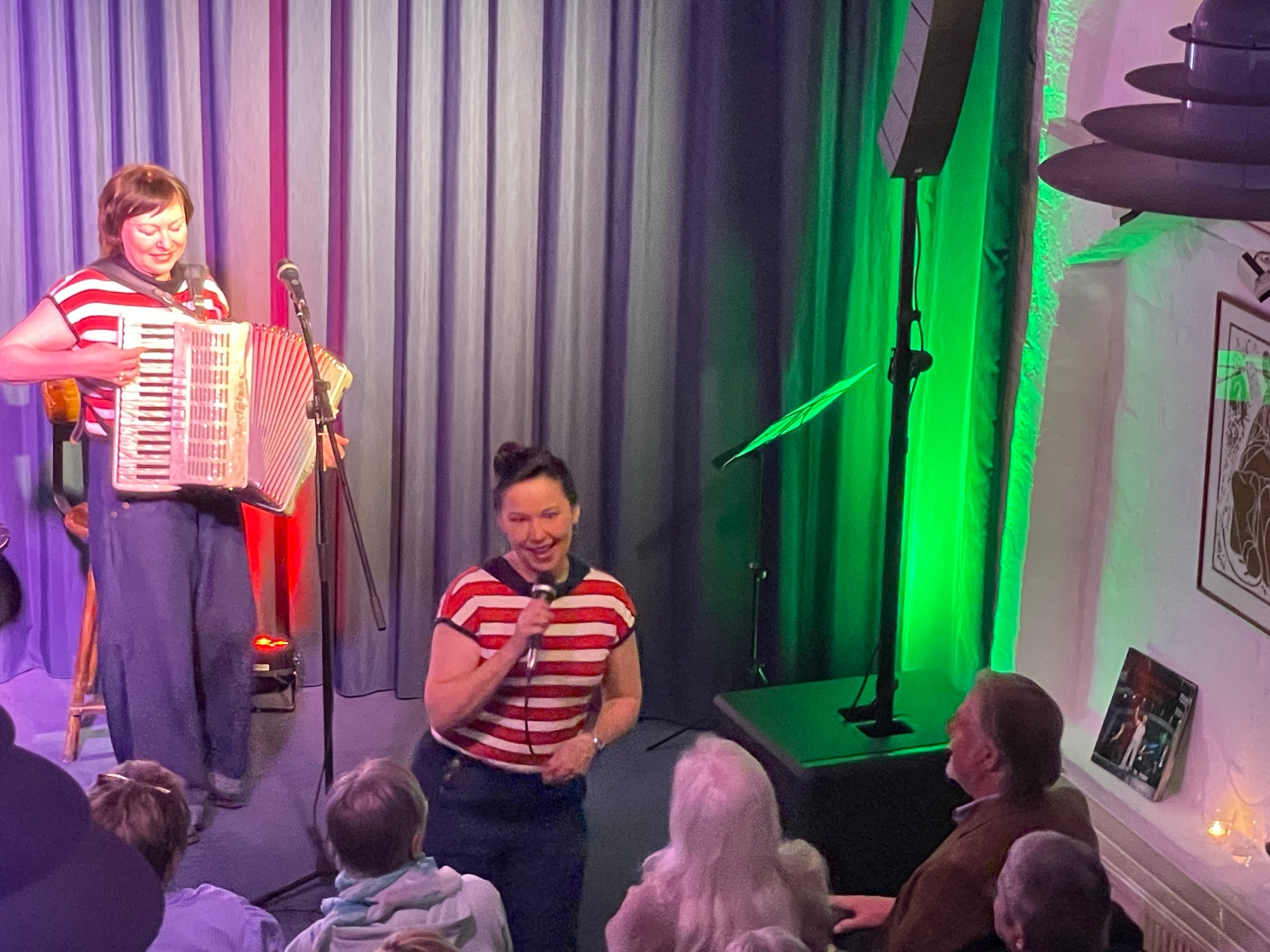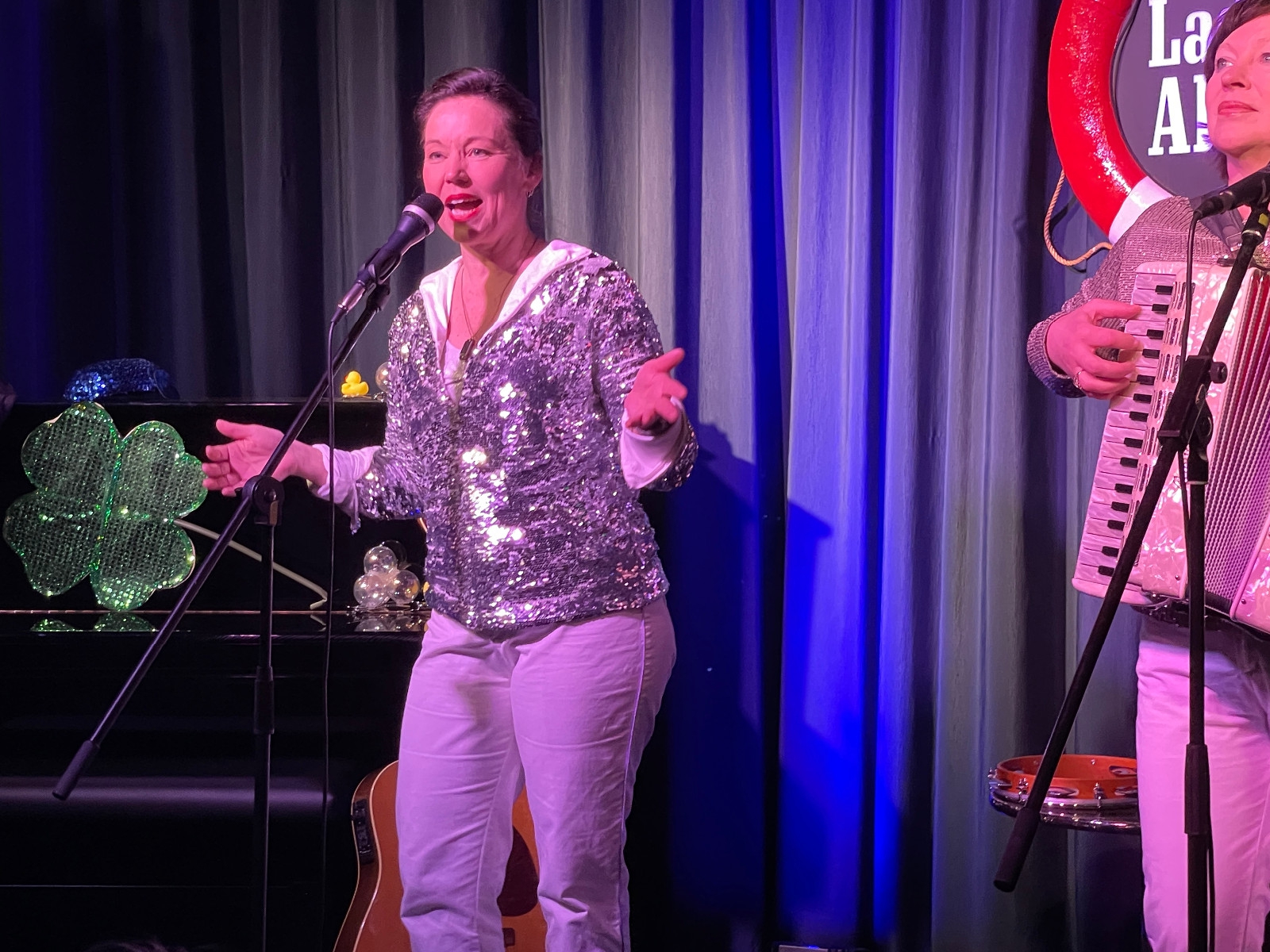 Frontlady Birgit Lünsmann kennt man in Hamburg als Schauspielerin und Sängerin aus dem Ohnsorgtheater, dem Hamburger Engelsaal und der Schmidt Mitternachtshow. Sie arbeitet seit 20 Jahren vorwiegend in musikalischen Theaterproduktionen, auch in Münster, Bad Pyrmont oder dem Südthüringischen Staatstheater Meiningen und ist mit eigenen Liederabenden und Soloproduktionen on Tour (z.B. Das rasante Leben der Judy Garland und Piaf & Sinatra). Im Kleinkunstbereich war sie lange mit dem Comedy-Trio Die Quetschtragödie unterwegs (Geburtsort Schmidt's) und ist zusammen mit Natalie Böttcher als Duo Ladies AHOI! aktuell am Start. Mit Natalie verbindet sie eine langjährige, intensive Zusammenarbeit aller musikalischen Stilrichtungen: Swing, Jazz, Schlager, Rock, Klassik, Musical. Akkordeonistin, ausgebildet an der Musikhochschule St. Petersburg und Gewinnerin des Weltmusikwettbewerbs Creole 2011. Mit ihrem temperamentvollen Repertoire wirkt sie auf vielen Bühnen – Schmidt Theater, Ohnsorg Theater, Kieler Schauspielhaus etc., mit verschiedenen Projekten: Nathalie & Natalie, Trio Balalaika Nueva, mit den Hamburger Symphonikern, Giora Feidman, mit beliebten Fernsehreporter Alfons, bei "Inas Nacht" etc.