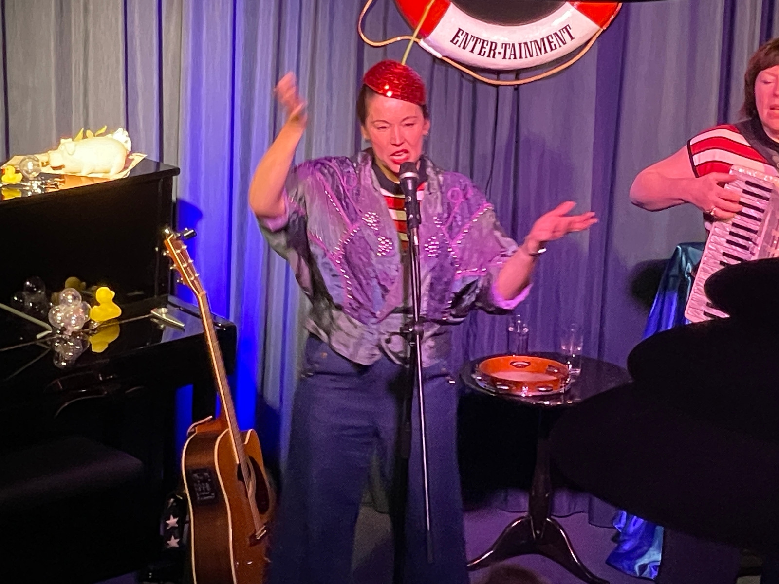 Frontlady Birgit Lünsmann kennt man in Hamburg als Schauspielerin und Sängerin aus dem Ohnsorgtheater, dem Hamburger Engelsaal und der Schmidt Mitternachtshow. Sie arbeitet seit 20 Jahren vorwiegend in musikalischen Theaterproduktionen, auch in Münster, Bad Pyrmont oder dem Südthüringischen Staatstheater Meiningen und ist mit eigenen Liederabenden und Soloproduktionen on Tour (z.B. Das rasante Leben der Judy Garland und Piaf & Sinatra). Im Kleinkunstbereich war sie lange mit dem Comedy-Trio Die Quetschtragödie unterwegs (Geburtsort Schmidt's) und ist zusammen mit Natalie Böttcher als Duo Ladies AHOI! aktuell am Start. Mit Natalie verbindet sie eine langjährige, intensive Zusammenarbeit aller musikalischen Stilrichtungen: Swing, Jazz, Schlager, Rock, Klassik, Musical. Akkordeonistin, ausgebildet an der Musikhochschule St. Petersburg und Gewinnerin des Weltmusikwettbewerbs Creole 2011. Mit ihrem temperamentvollen Repertoire wirkt sie auf vielen Bühnen – Schmidt Theater, Ohnsorg Theater, Kieler Schauspielhaus etc., mit verschiedenen Projekten: Nathalie & Natalie, Trio Balalaika Nueva, mit den Hamburger Symphonikern, Giora Feidman, mit beliebten Fernsehreporter Alfons, bei "Inas Nacht" etc.