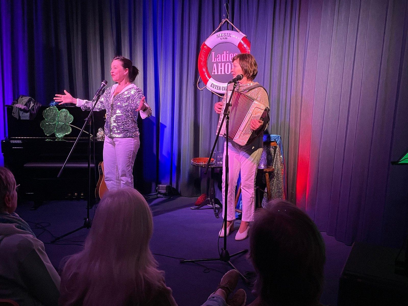 Nachdem die beiden Ladies ihr beliebtes Seemannsliederrepertoire erfolgreich ausgelebt haben, folgt nun das Unvermeindliche: Das brachiale Entern neuer Seewege! Sie spielen jetzt neben den bekannten und inzwischen im Jungbrunnen gereiften Shanties, ihre Lieblingslieder aus den 60ern, 70ern und 80ern – Rock, Pop, Folk, Swing und NDW! Einiges forsch umgetextet, anderes überraschend neu arrangiert. Und so folgt nach dem ersten Programm der beiden charmanten Frontladies die konsequente maritime Fortsetzung in ihrer ganz eigenen authentisch-euphorischen Art.